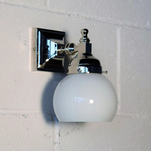 Lampada a parete in ottone nichelato con diffusore in vetro opalino bianco latte, ispirata allo stile inglese tradizionale.. Il design elegante e sobrio richiama l’illuminazione classica britannica, caratterizzata da linee equilibrate e dettagli raffinati, perfetti per ambienti […]