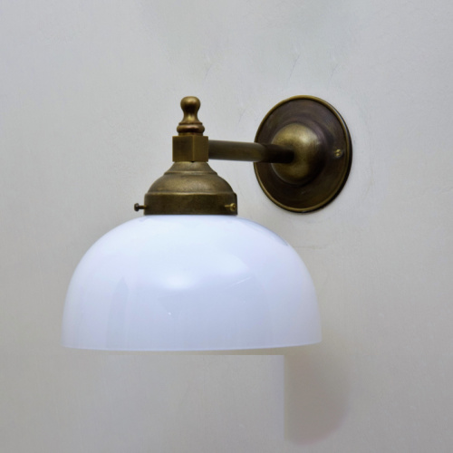 Lampada a parete in ottone brunito e vetro opalino | art. LP2