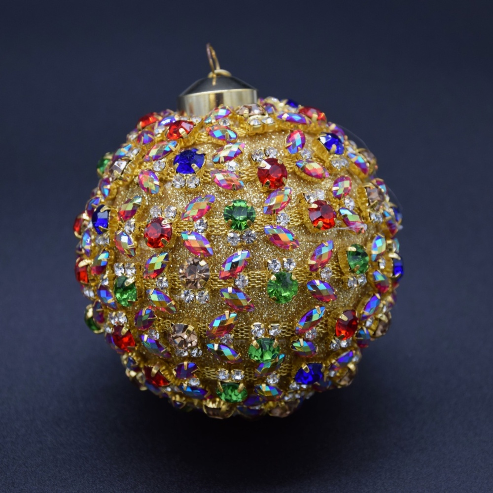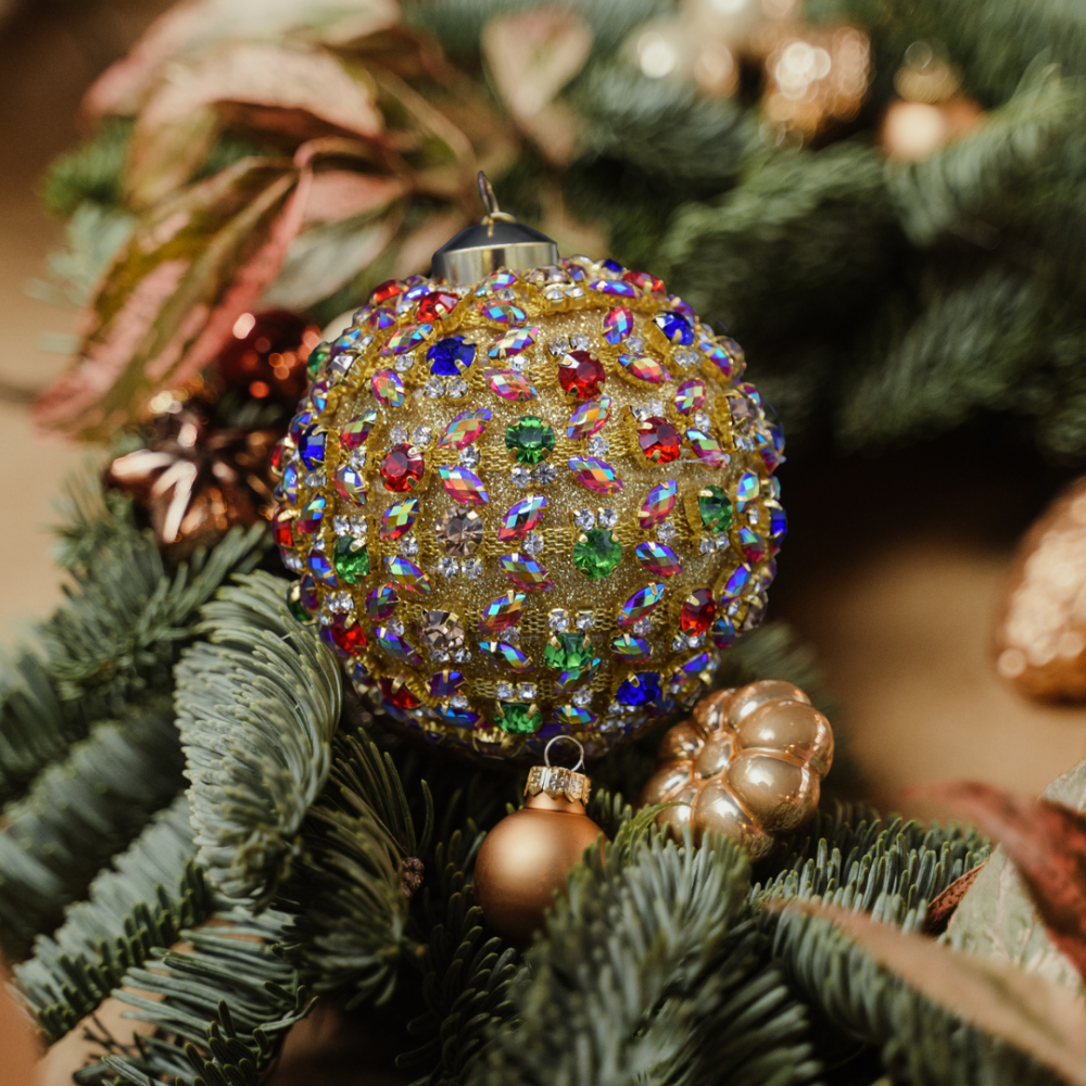 Decorazione natalizia in vetro soffiato | Pallina con cristalli multicolori