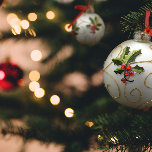 Decorazione natalizia in vetro soffiato | Pallina vetro con agrifoglio