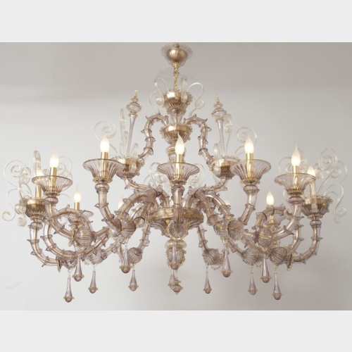 Barchetta Chandelier in Murano Glass, Amethyst and Gold, 12 lights