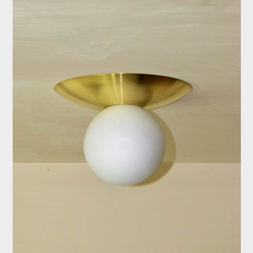 Vintage finish brass wall lamp and satin milk white opal glass.