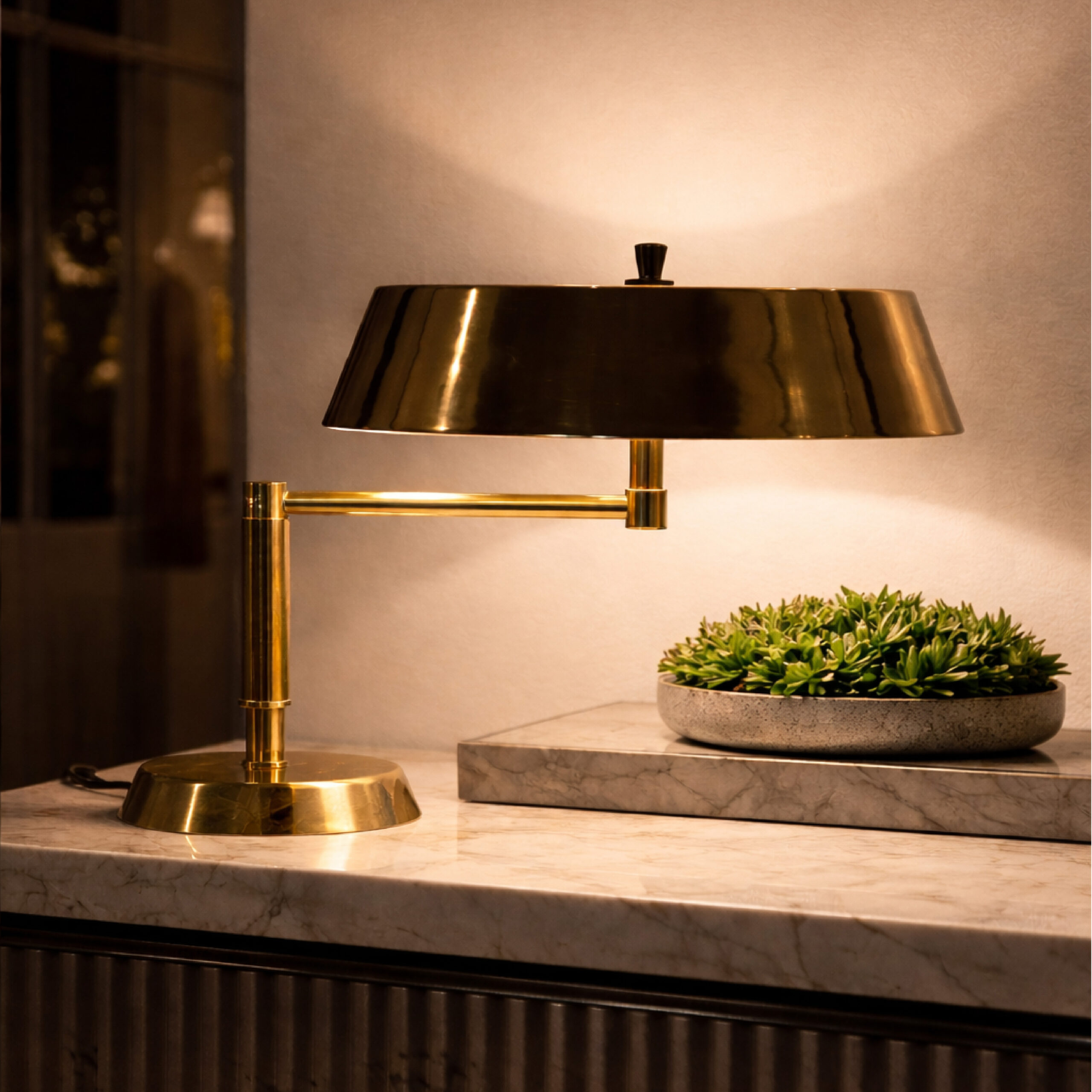 The FA Table Lamp is also available with burnished brass, nickel and pale gold finish.