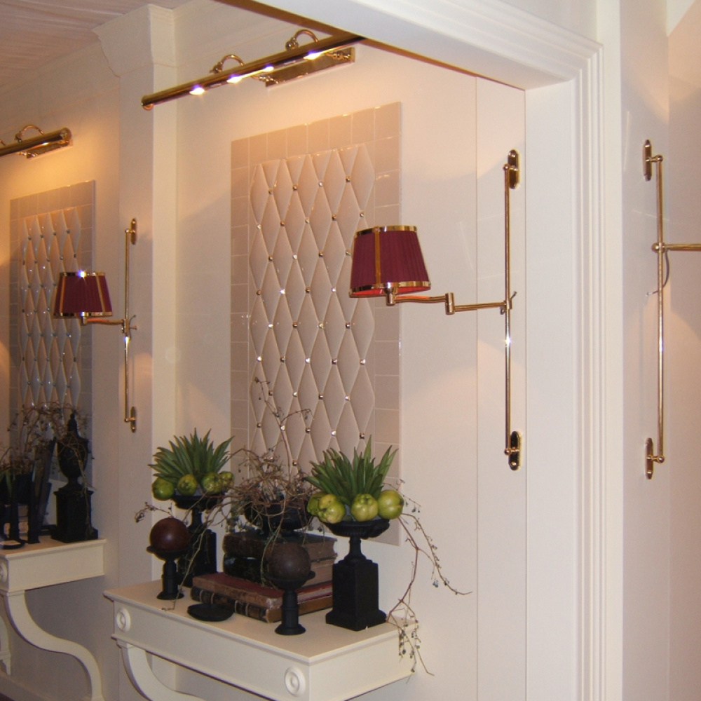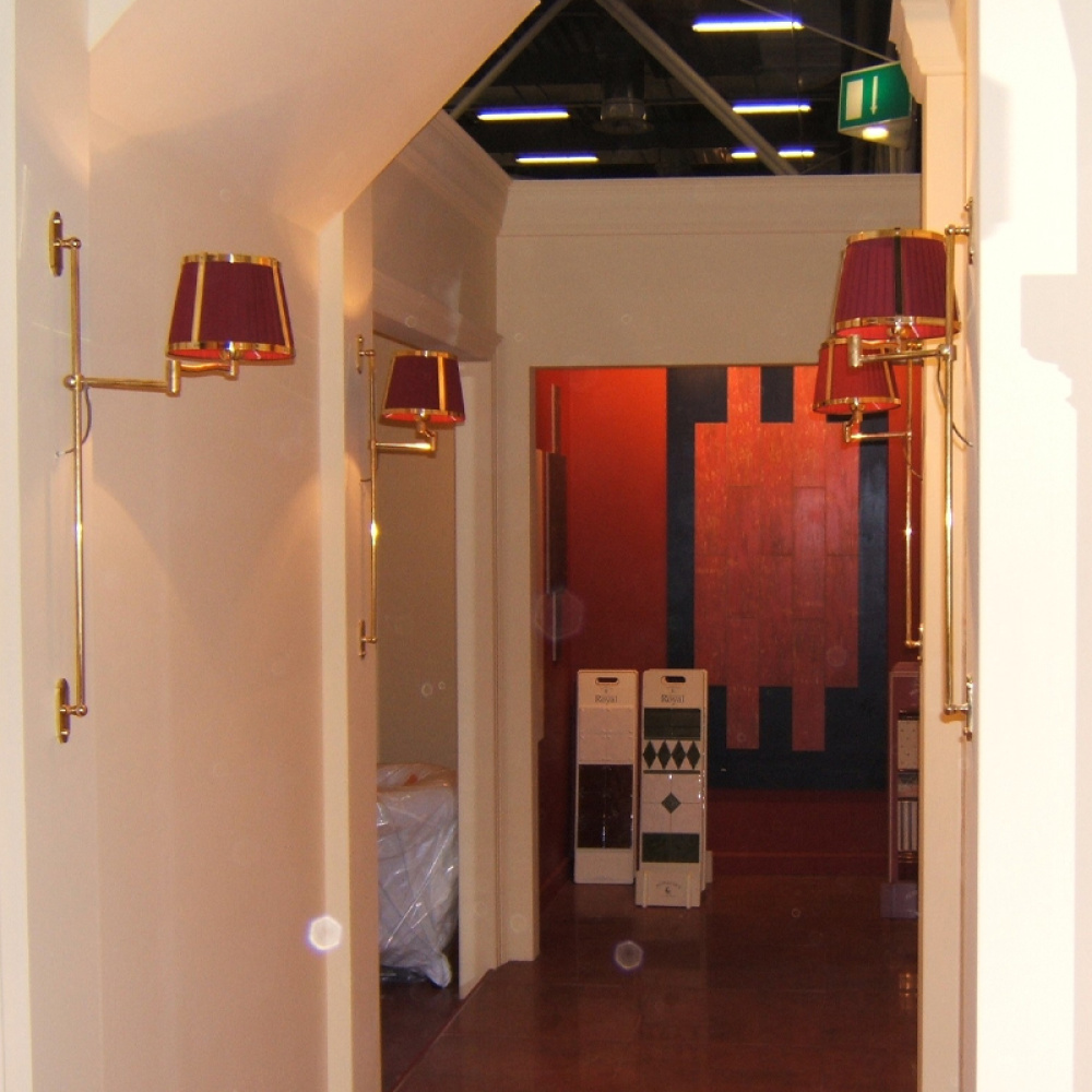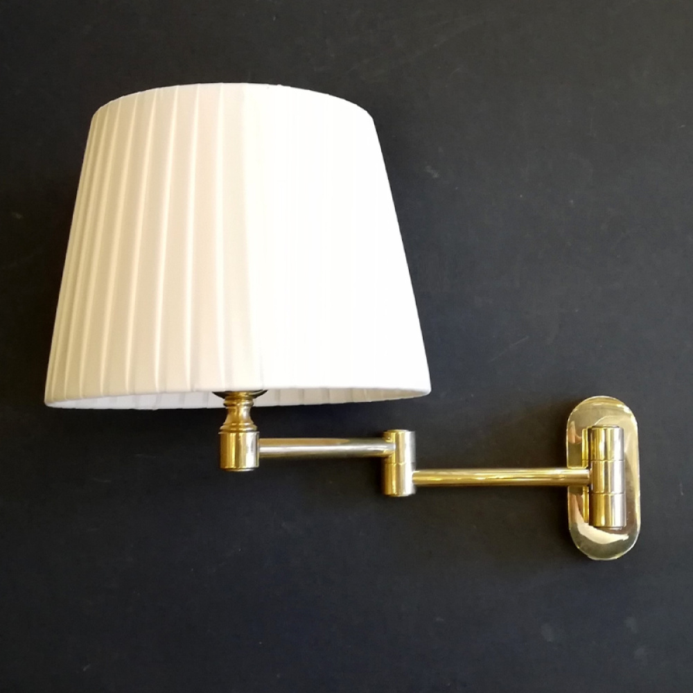 Lampada a parete in ottone naturale con braccio a doppio snodo, progettata per garantire libertà di movimento e precisione nell’illuminazione.