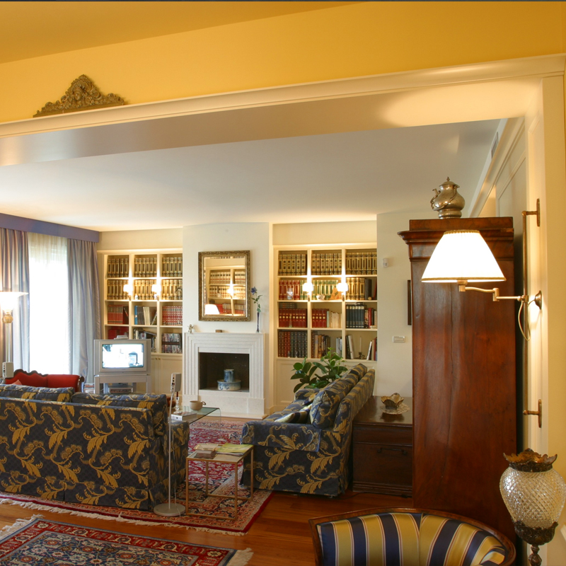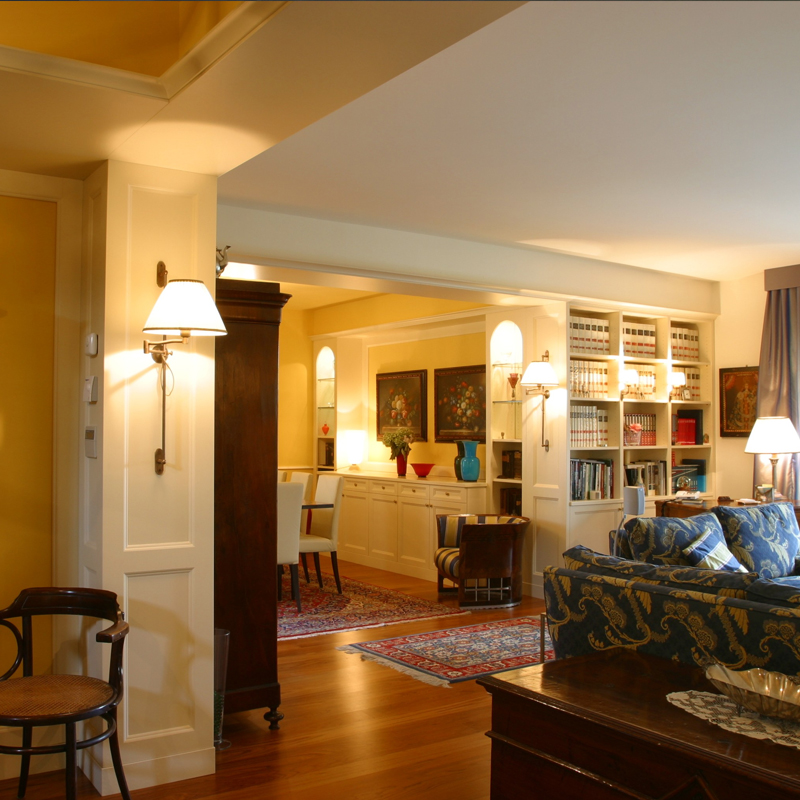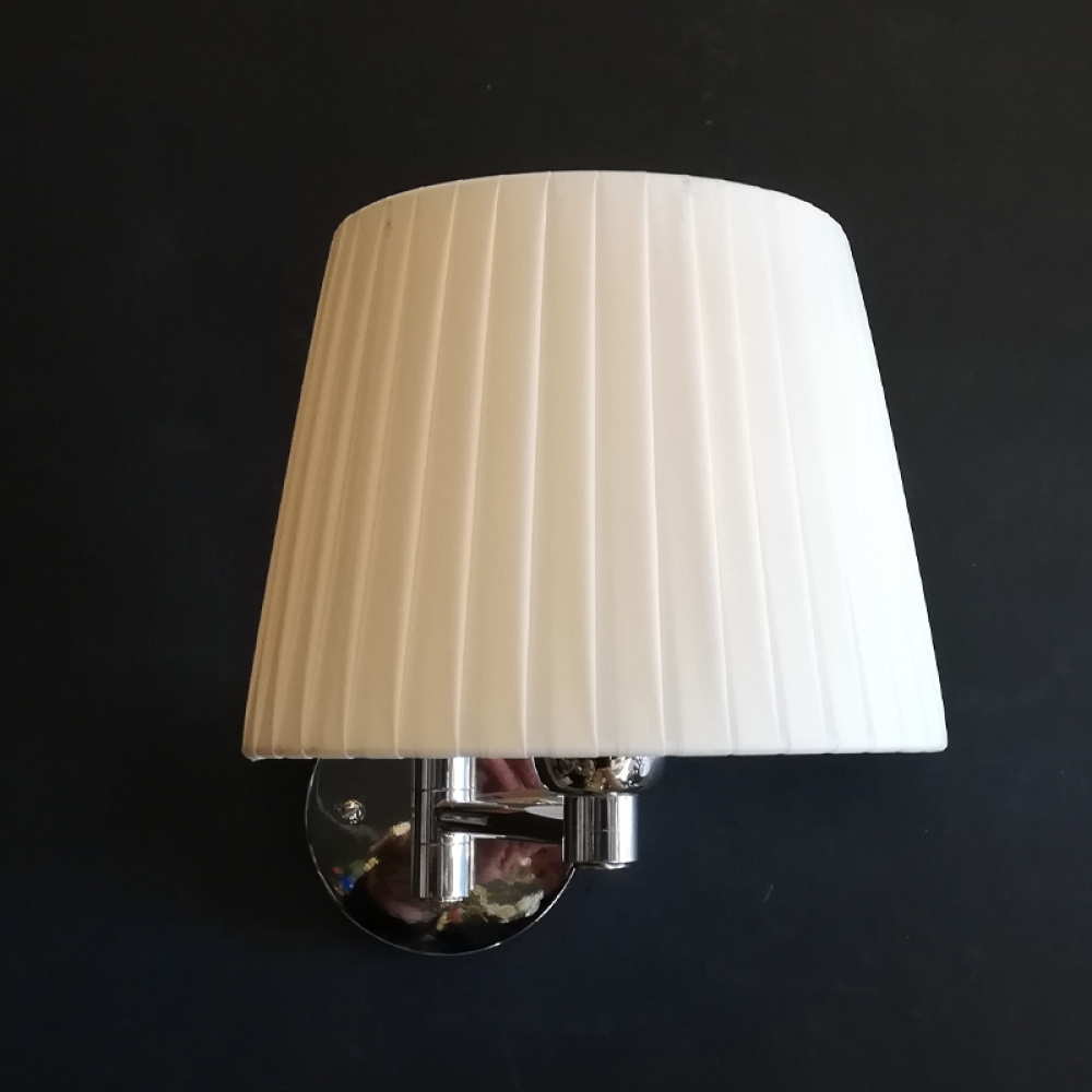 Il paralume a pieghe, dal gusto classico, diffonde una luce calda e confortevole, ideale per accompagnare momenti di lettura o valorizzare zone specifiche dell’ambiente.