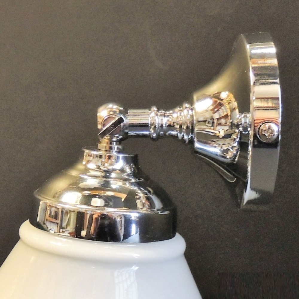 Applique da parete in ottone cromato con braccio snodato, progettata per offrire massima funzionalità e versatilità. Il sistema orientabile permette di direzionare la luce secondo le esigenze, rendendola ideale come punto luce per lettura o illuminazione mirata.