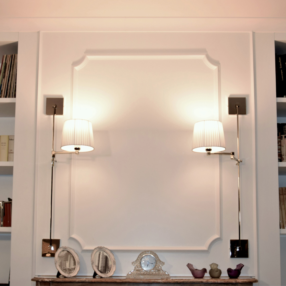 Grazie alla struttura regolabile, la lampada consente di orientare facilmente la luce in base alle esigenze, risultando perfetta per illuminare una testiera da letto, il montante di una libreria, uno specchio o la parte superiore di un caminetto.
