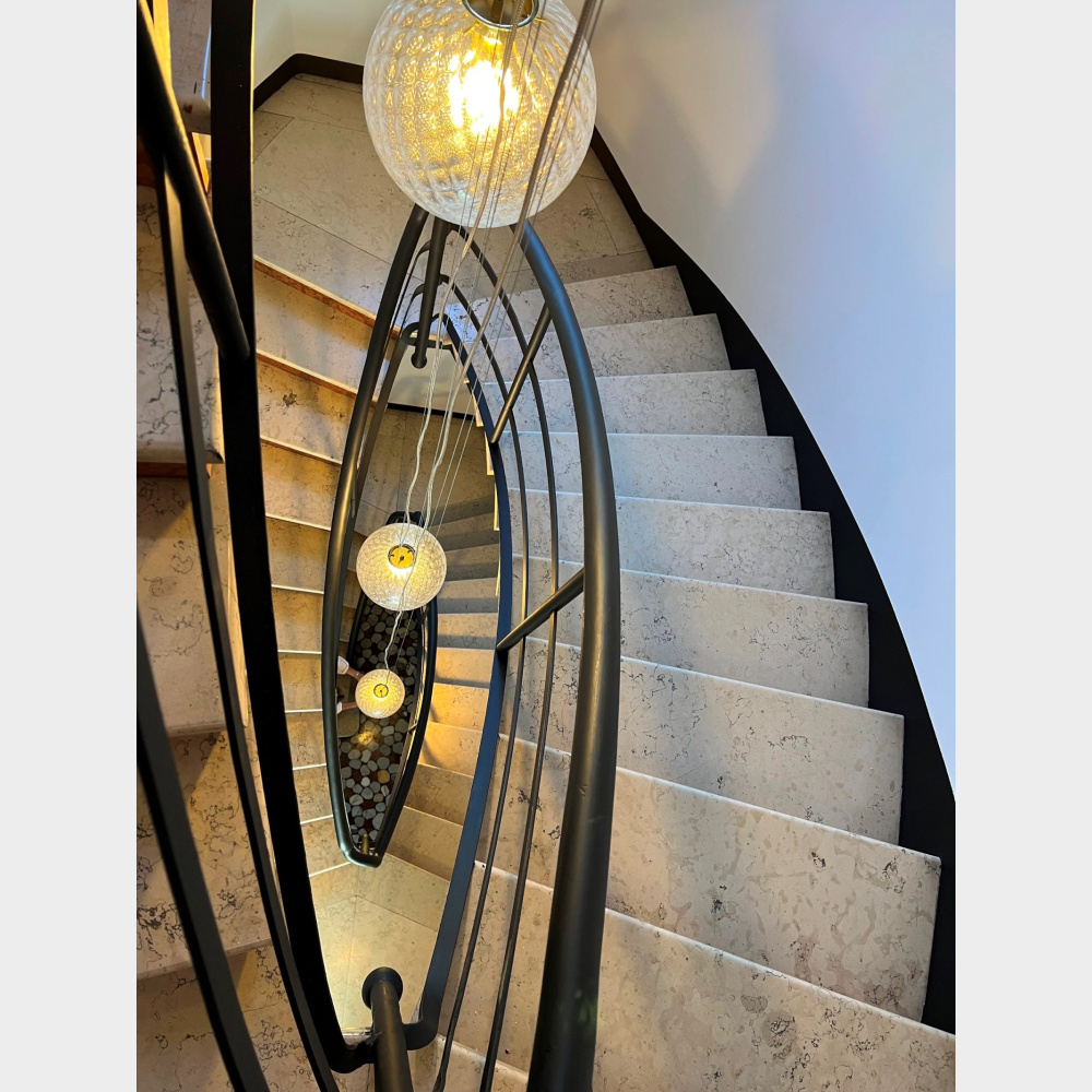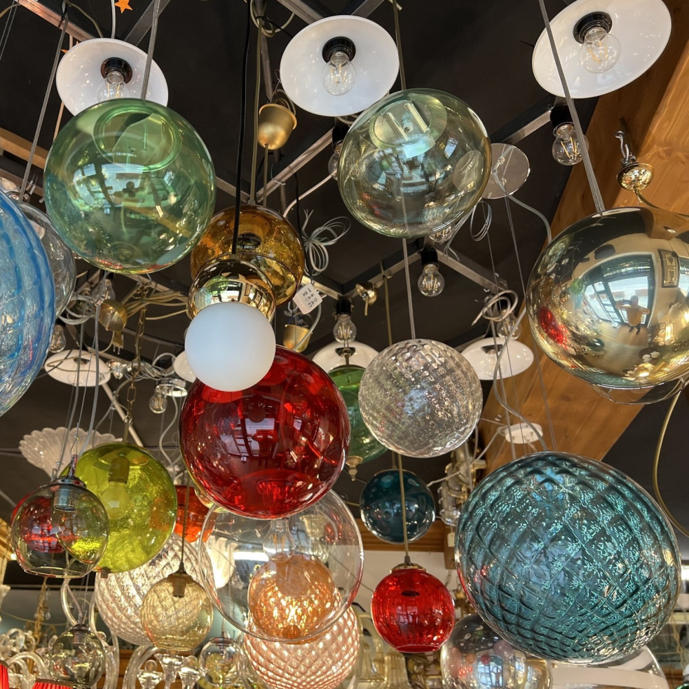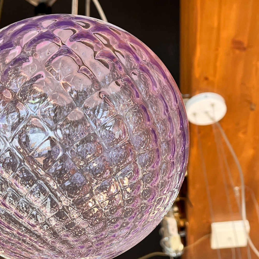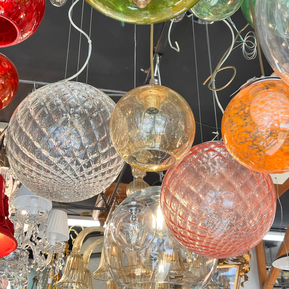 Lampada a soffitto/sospensione in vetro soffiato tipo Ballotòn, antica tecnica di Murano (Venezia) detta balotòn, in dialetto muranese. Disponibile in varie misure e colori.
