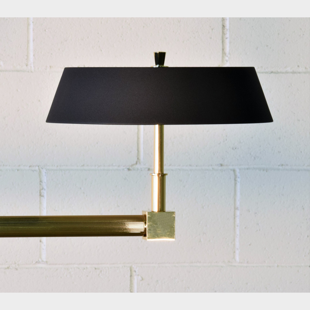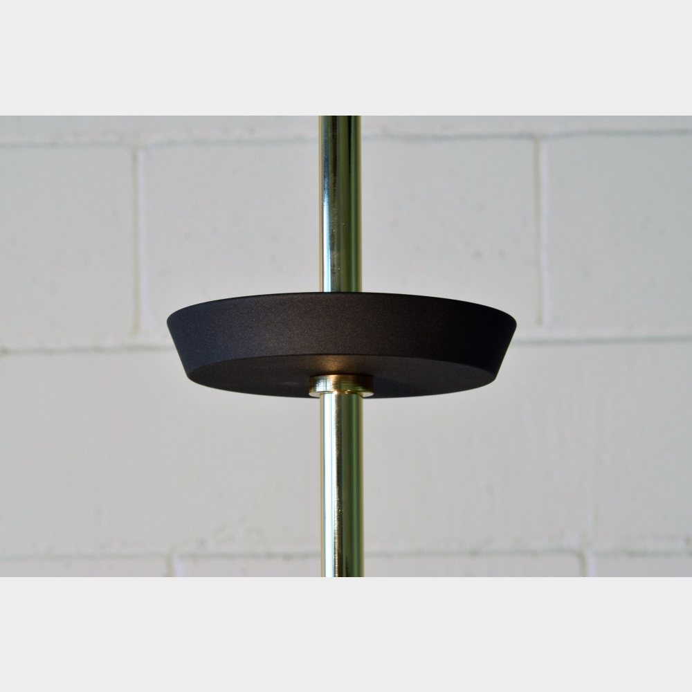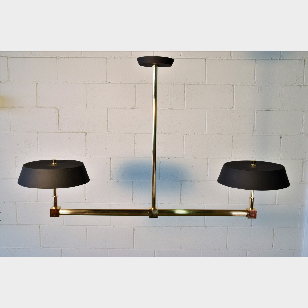 Il Lampadario FA Doppio, parte della nostra collezione di lampade FA, è un esempio di lampadario in stile anni ’50. La struttura è in metallo nichelato, e ospita un totale di 4 luci disposte sulle due estremità. Il Lampadario FA Doppio spicca per la sua eleganza e richiama uno stile vintage, pur adattandosi facilmente ad un contesto arredato con uno stile maggiormente moderno. La sua struttura particolare lo rende adatto a illuminare diversi ambienti, quali ad esempio soggiorno e cucina, e può fornire illuminazione efficace anche se appeso sopra una scrivania o un tavolo da pranzo. Come gli altri elementi della collezione FA, il nostro lampadario è disponibile anche in ottone dorato e con paralume satinato nero.