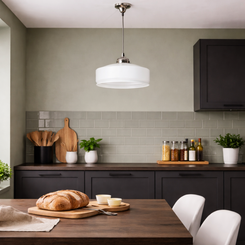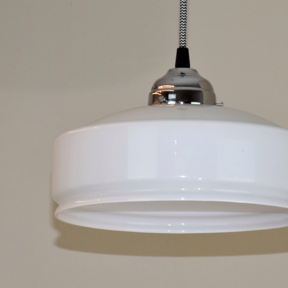 Lampada a soffitto piatto cilindrico in vetro bianco latte opalino | art. LS 1