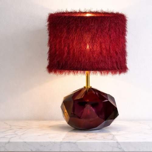 Elegante lampada da tavolo con base in pregiato vetro di Murano, realizzata artigianalmente.