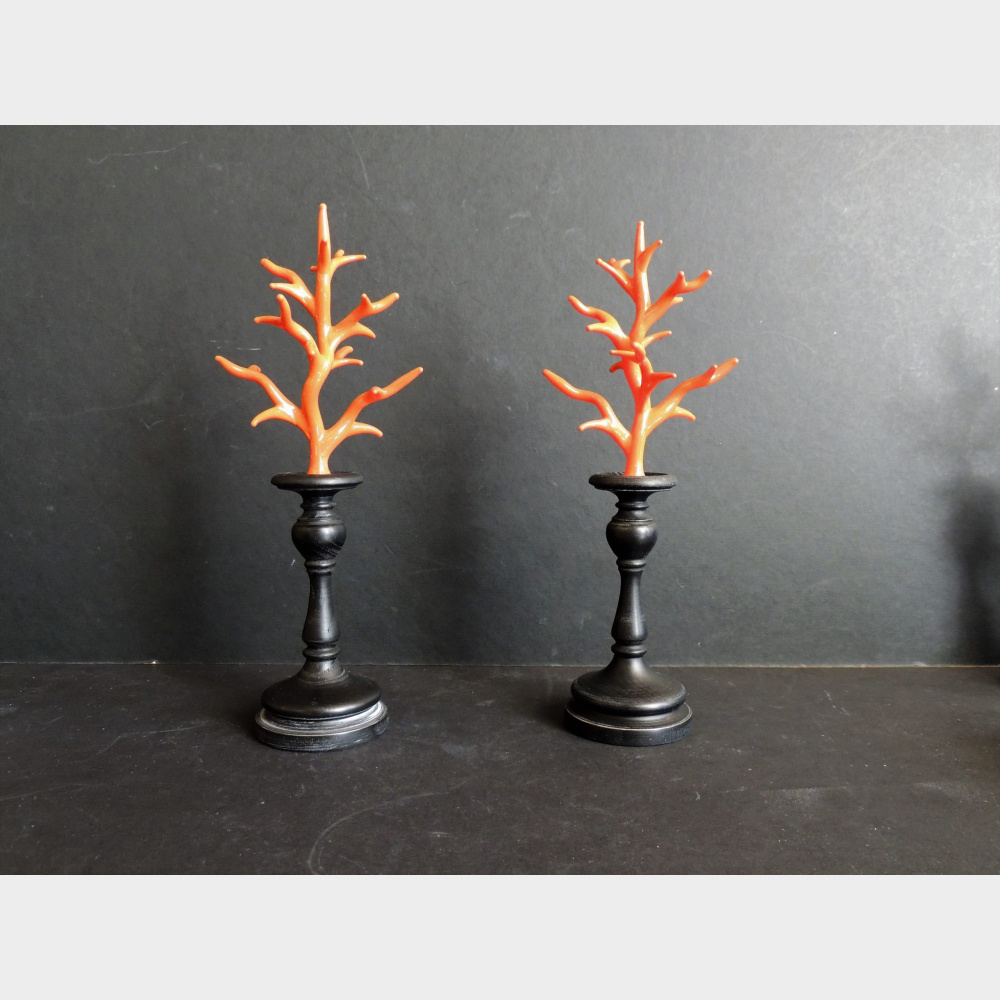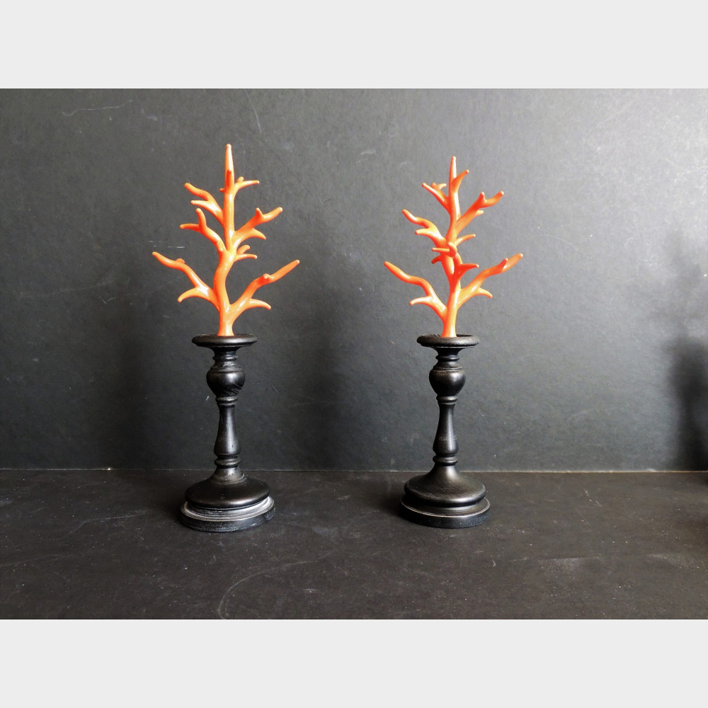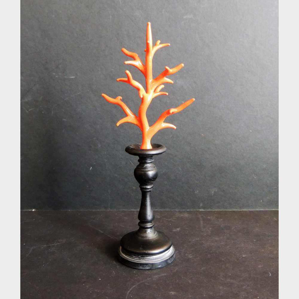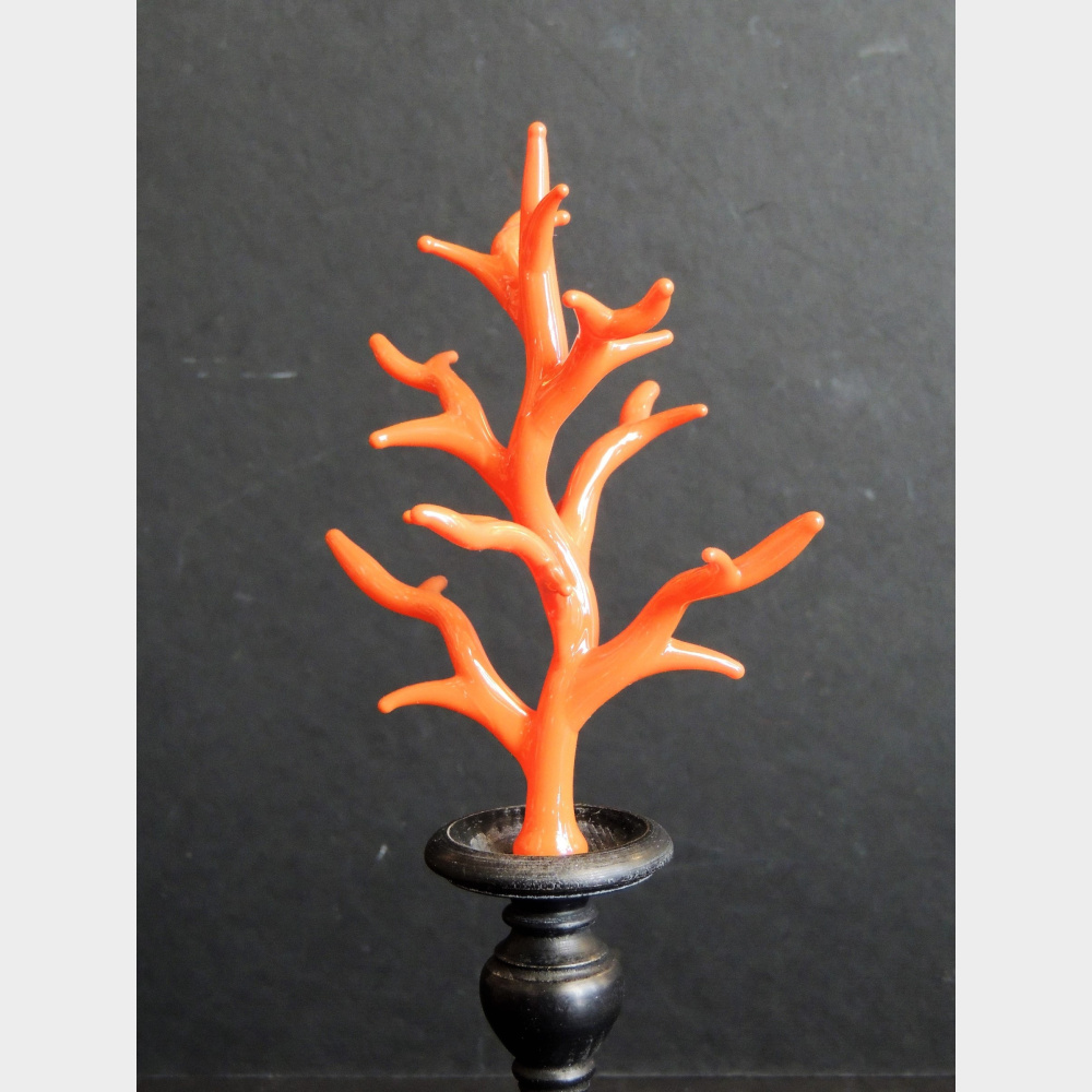 Coralli in vetro soffiato montati su una base in legno ebanizzato .