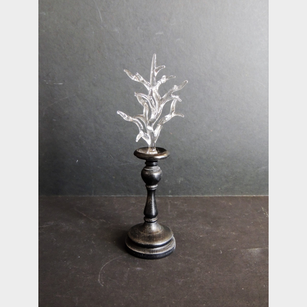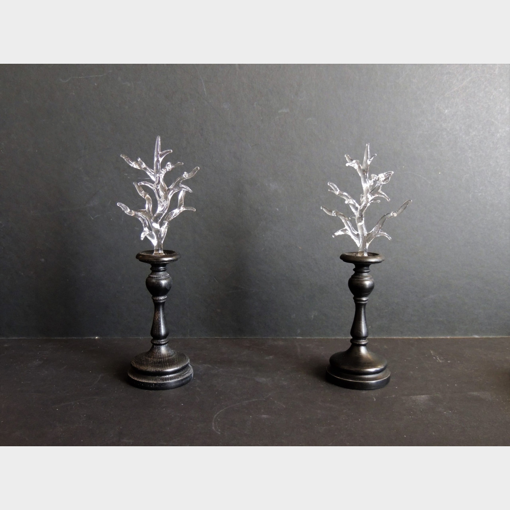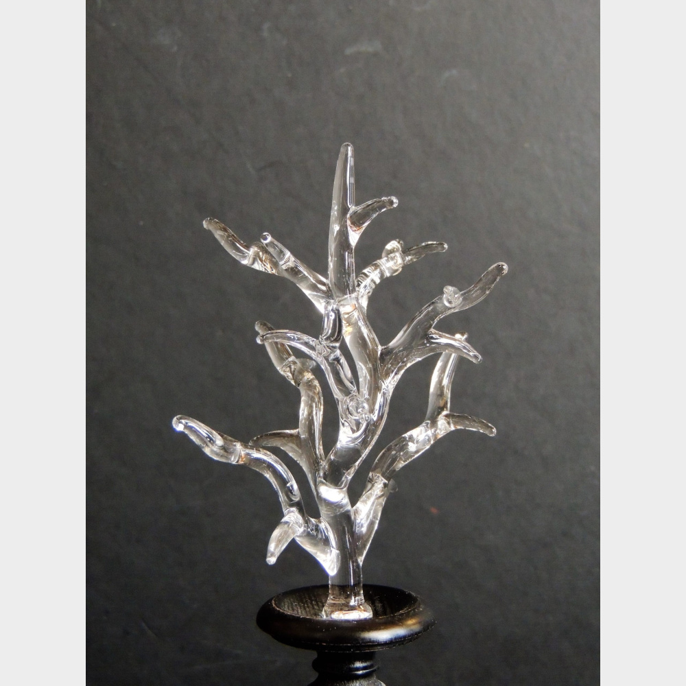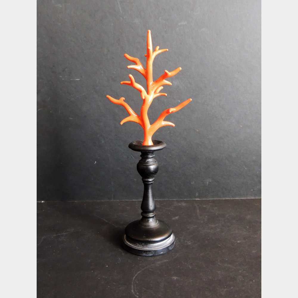 Coralli in vetro soffiato montati su una base in legno ebanizzato .